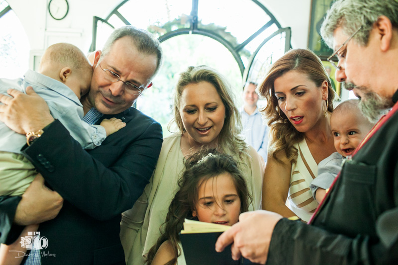 Plaka, Church of Agia Ekaterini. The initial impression for a baptism photographer seeing to best stage his work is favourable. The Plaka district itself and the Church of Agia Ekaterini are among the few locations in Athens where the natural surroundings are ideal for a baptism photographer; he can highlight the atmosphere of the area and combine it with the joyous faces of the godparents, the family and the guests. Even more so when the baptism involves twins. It is more than just photographing the double protagonists in the baptism al font it is mainly trying to capture their unique characteristics through a single photo shoot. Their expressions, their movements, their reactions, all of which are documented in the baptism photographs, may well be the first time the two are differentiated into individuals, after so far growing as one. That means that the eye of the photographer should not endeavour to equally balance the images of the protagonists, but instead to make each character emerge independently in this special moment.
