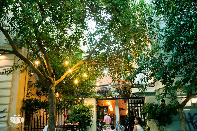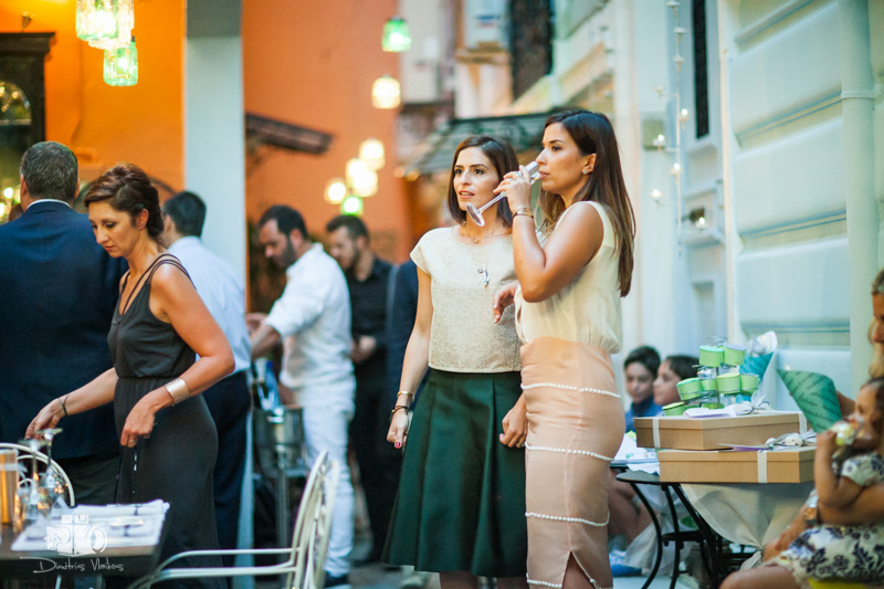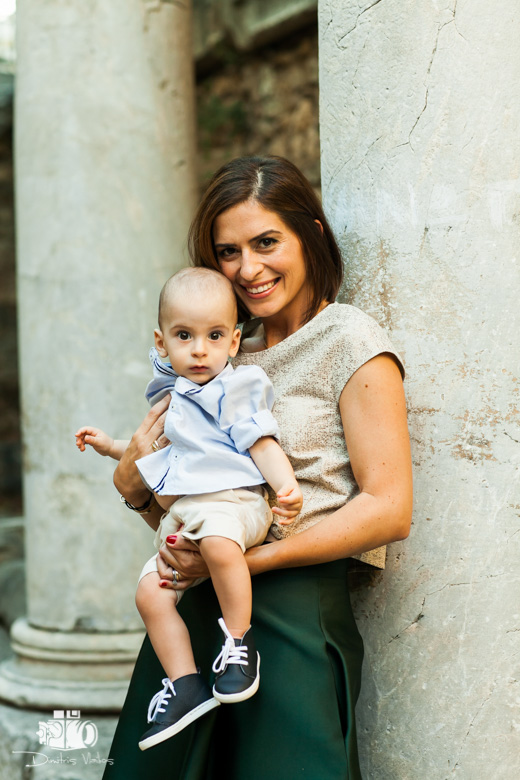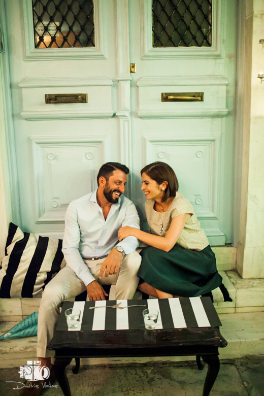 In Plaka, at one of the most beautiful chapels in the centre of Athens, with memories of a time when adversity did not necessarily affect the colour of the roof tiles, the window, the clean and fragrant courtyard, the well-cared for and proudly standing homes. The graceful and particularly modest appearance of the parents and their faces themselves allowed that feeling to spill over into the present time. The varying shades and splashes of green, beige and brown adorned the backdrop of the Roman agora in a living and timeless manner. In the diffuse afternoon Attica light, portraits are taken next to the remaining columns of the agora in the area around the temple. Then a stroll through the winding backstreets of the Plaka district. A reception at the “2mazi” restaurant helped prolong the noble character of the atmosphere.