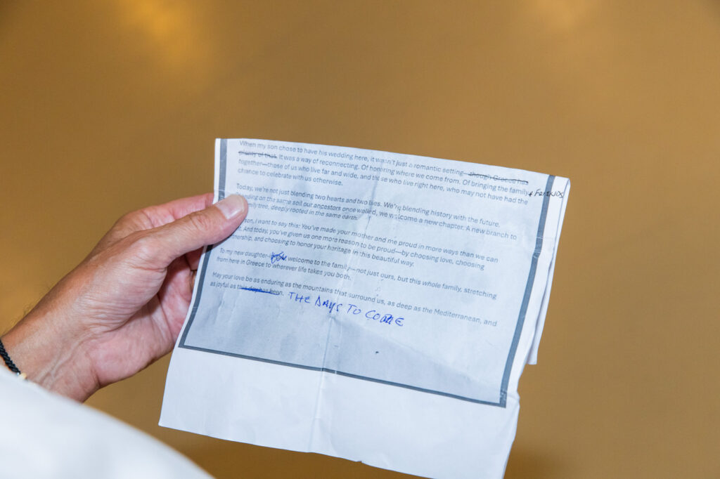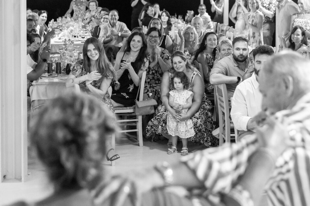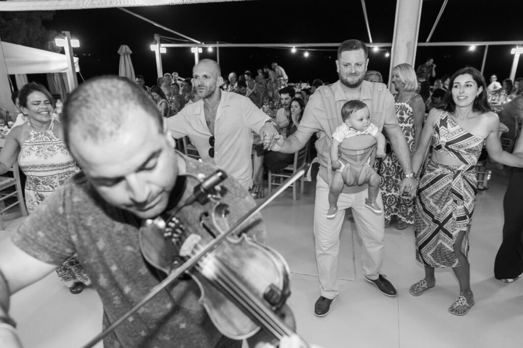 From the moment I arrived, I could feel it: a true traditional Greek wedding atmosphere, even though the big day was still ahead. The pre-wedding party was a full-scale event on its own, complete with live music, heartfelt speeches, and of course, traditional dancing that carried the night into the early hours.